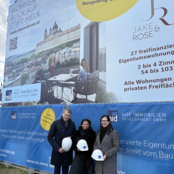 Die NOE Immobilien Development GmbH startet den Verkauf der Eigentumswohnungen des Projekts „Jake & Rose“ in der Jakob-Prandtauer-Straße 9 in Melk. Das Neubauprojekt umfasst 27 freifinanzierte Wohnungen mit zwei bis vier Zimmern und Wohnflächen zwischen 54 und 103 Quadratmetern. Die Fertigstellung ist für 2027 angekündigt.