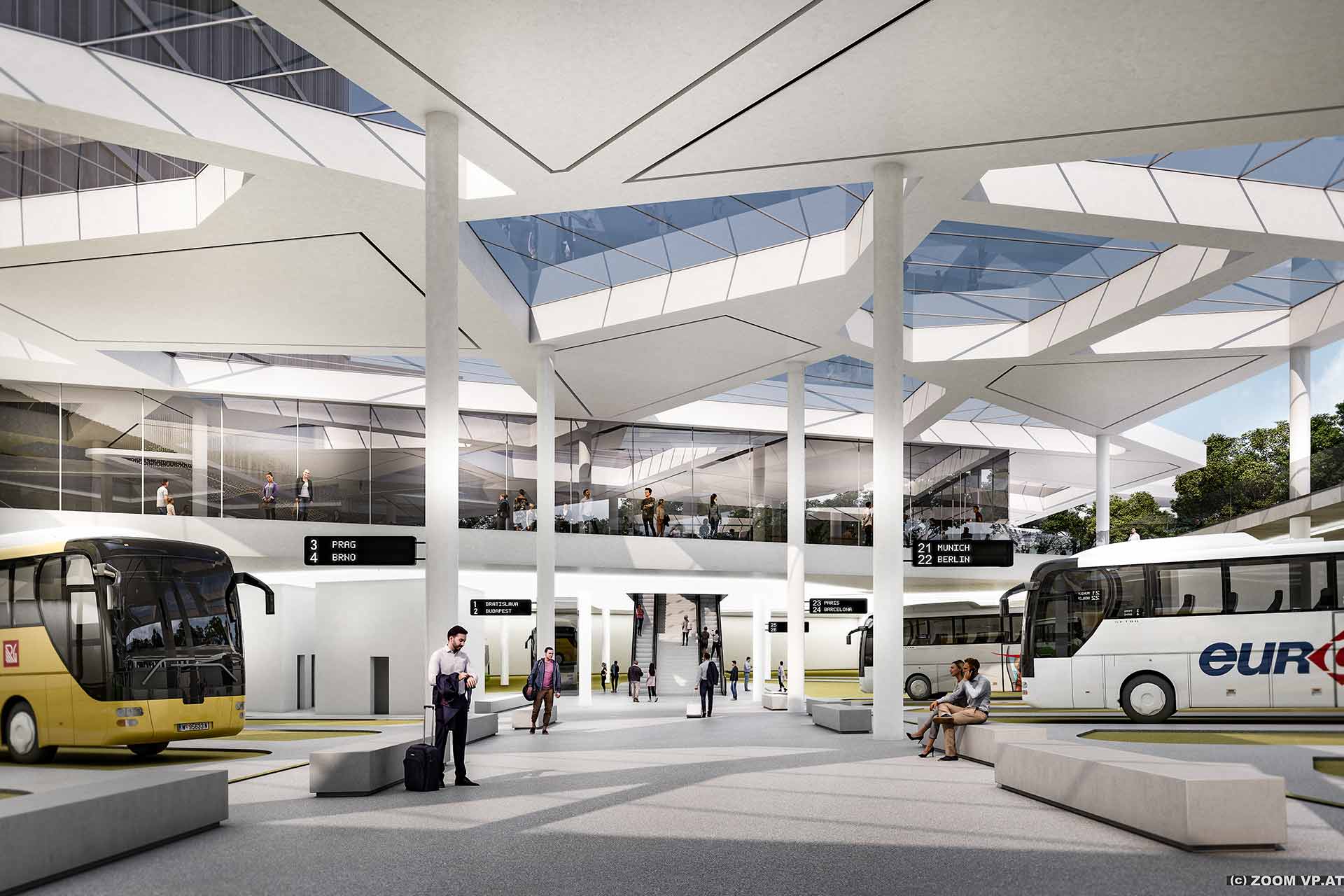 Fernbus-Terminal, Otto-Wagner-Areal und Waterfront am Asperner See im Fokus.